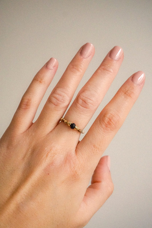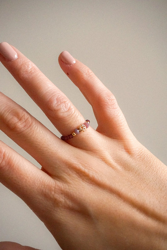Anillo Granate y Bola Dorada