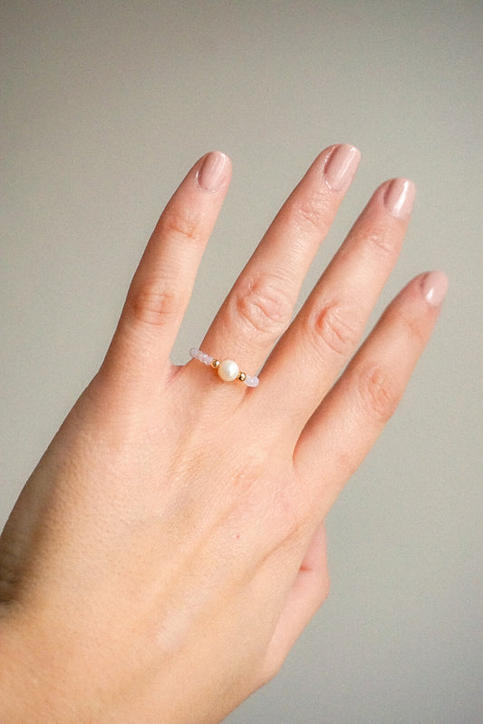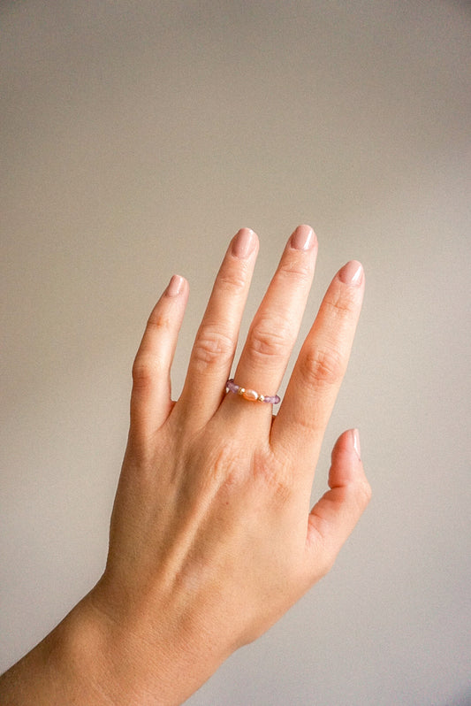 Anillo Amatista y Perla Rosa