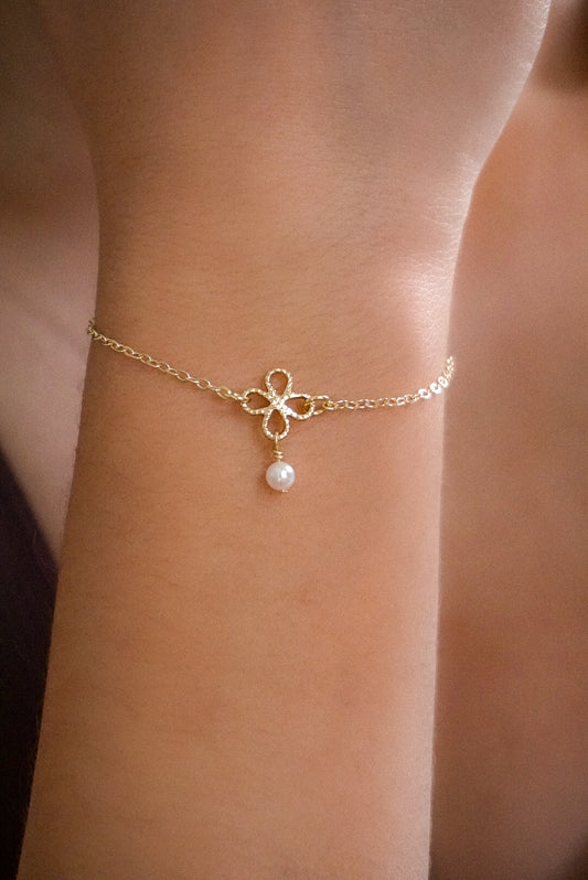 Pulsera Flor Perla Blanca