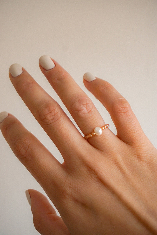 Anillo Perlas Blancas Pieza Dorada