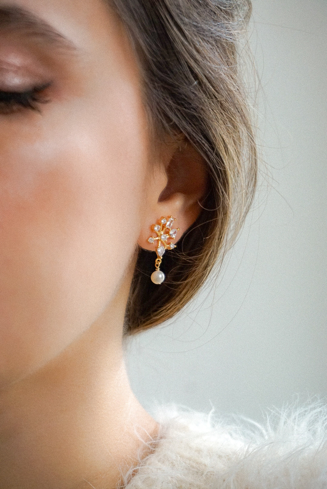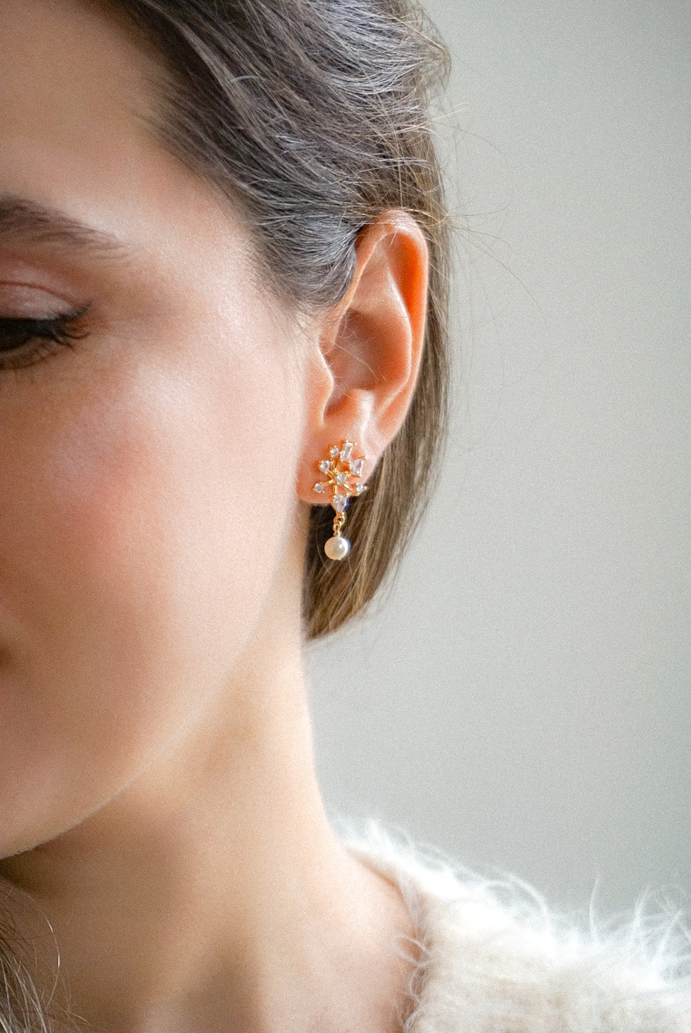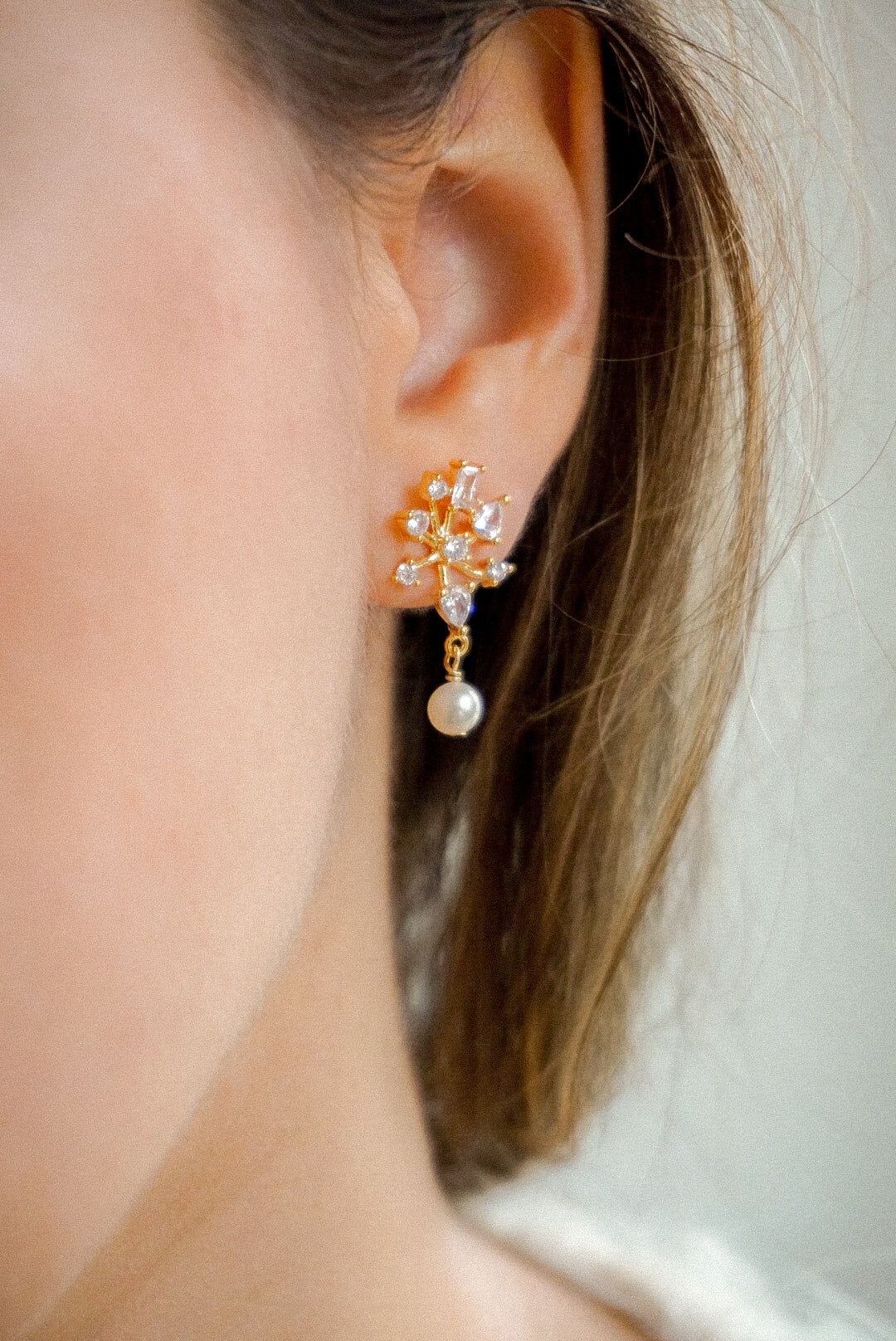 Unos pendientes super originales con una explosión dorada y brillante y una perla dará movimiento a tu look.